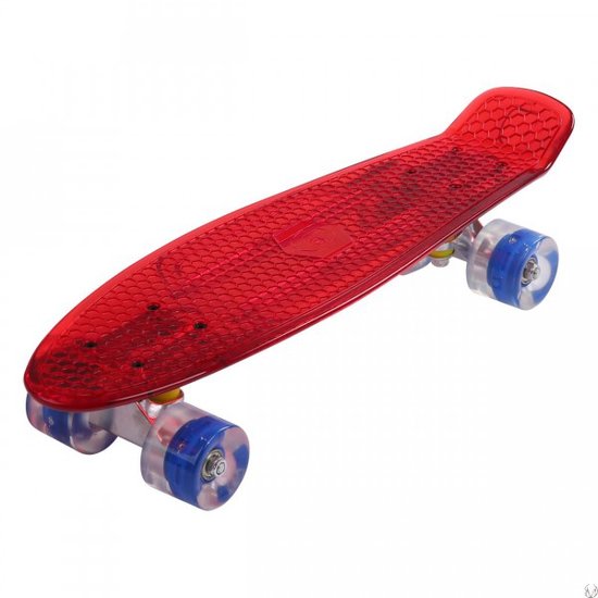 Deze transparante mini cruiser is gewoon buitenaards! De LED wielen geven licht als je met de skateboard beweegt.